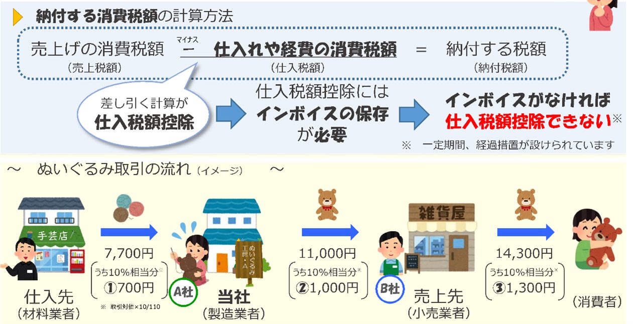 インボイス制度とは簡単にいえば、取引内容や消費税率、消費税額などの記載要件を満たした請求書などを発行・保存しておくという制度です。要件を満たした請求書を保存しておくことで、仕入側は消費税の仕入税額控除を受けることができます。
